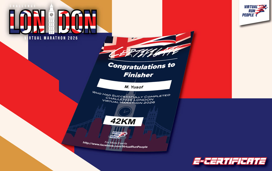 Get ready for an exciting run in 2026 with the Challenge London Virtual Marathon 2026! Run, jog, or walk from wherever you are — at your own pace — and be part of a community of challengers. Complete your distance, share your journey, and proudly show off your Challenge London Virtual Marathon 2026 finisher’s T-Shirt and medal as a symbol of your achievement!