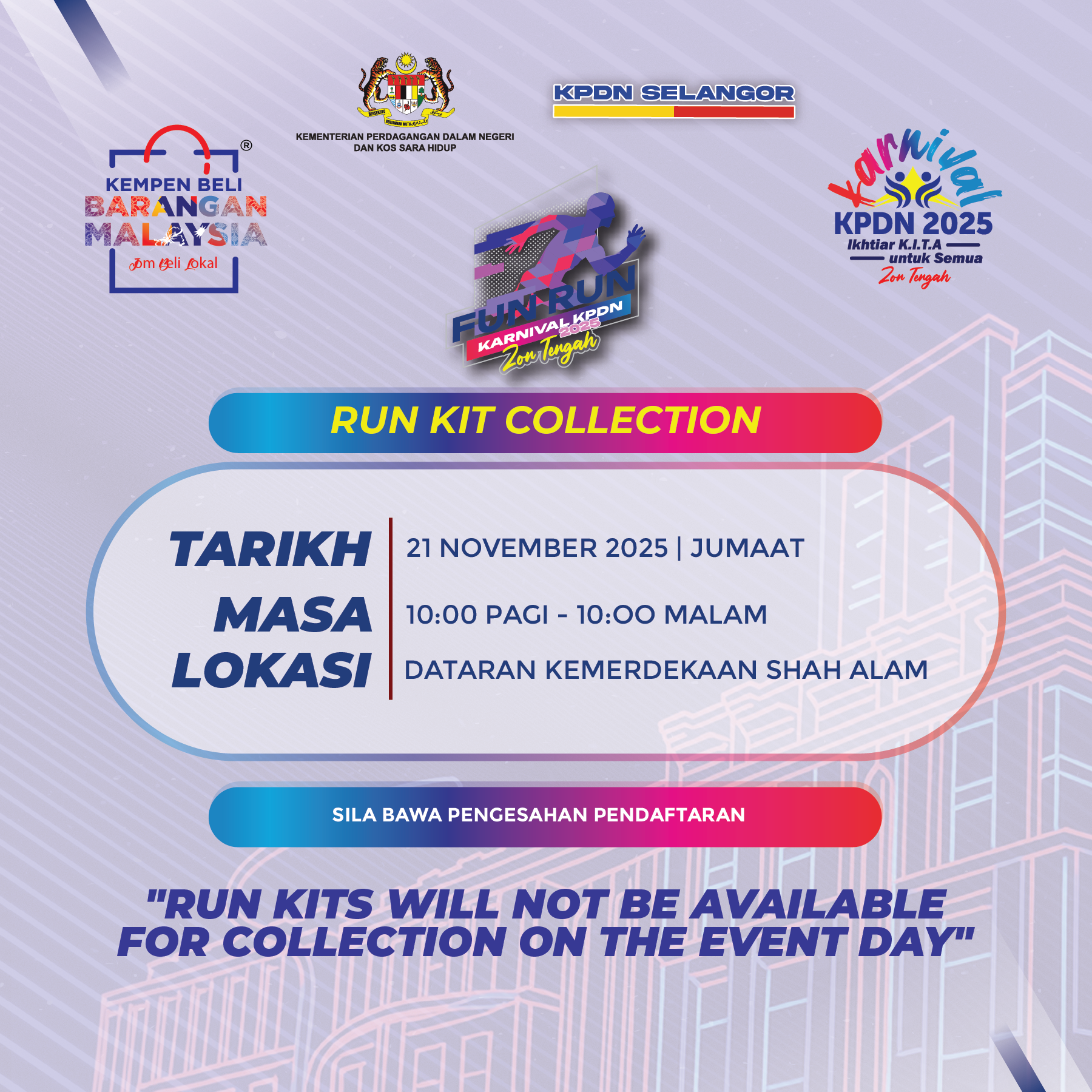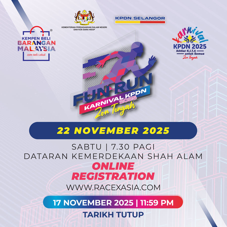 FUN RUN KARNIVAL KPDN 2025 adalah larian komuniti dan sesuai untuk semua peringkat umur.