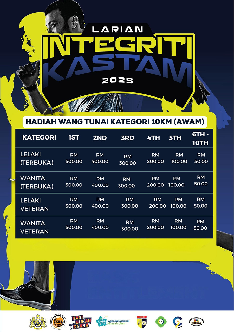 Sertai larian ini, hayati semangat kesukanan sambil bersama-sama menyemarakkan budaya berintegriti. Daftar penyertaan anda hari ini dan jadilah sebahagian daripada gelombang positif ini!