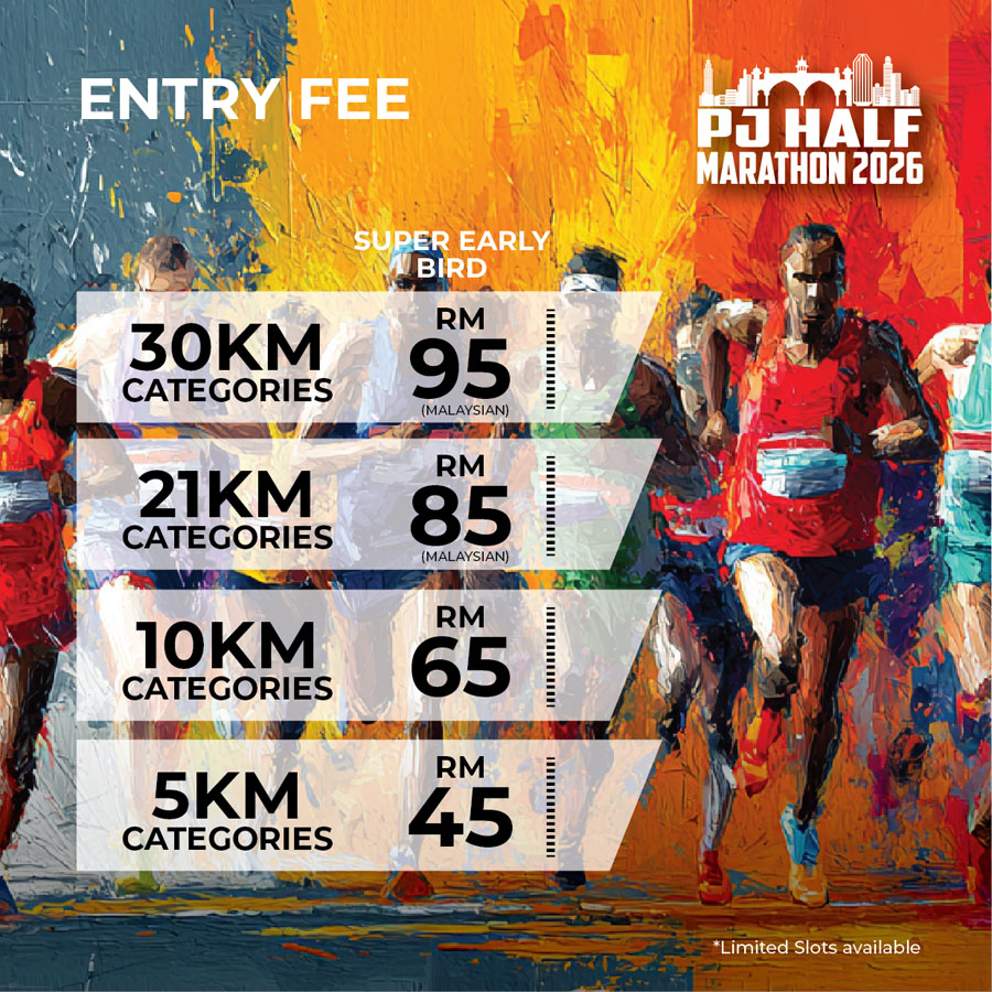 D: 30km Women's Open Malaysia (18-39yrs) E: 30km Men's Veteran Open Malaysia (40yrs & above) F: 30km Women's Veteran Open Malaysia (40yrs & above) (30km) Fees shown is SUBJECT to Admin Fee