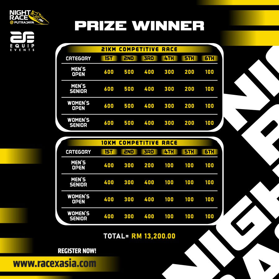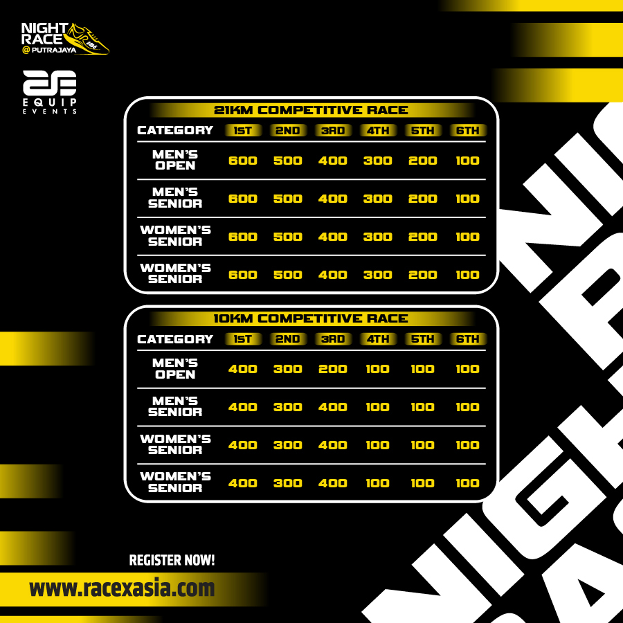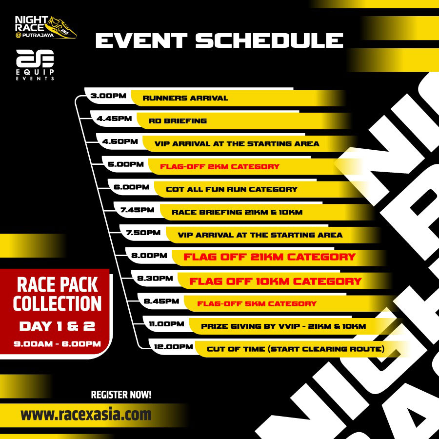 6 June 2026 / Flag Off Time 2KM 5:00pm, 21KM 8:00pm, 10KM 8:30pm, 5KM 8:45pm / Cut off Time 21KM: 4H, 10KM: 2H, 5KM: 1H, 2KM: 1H