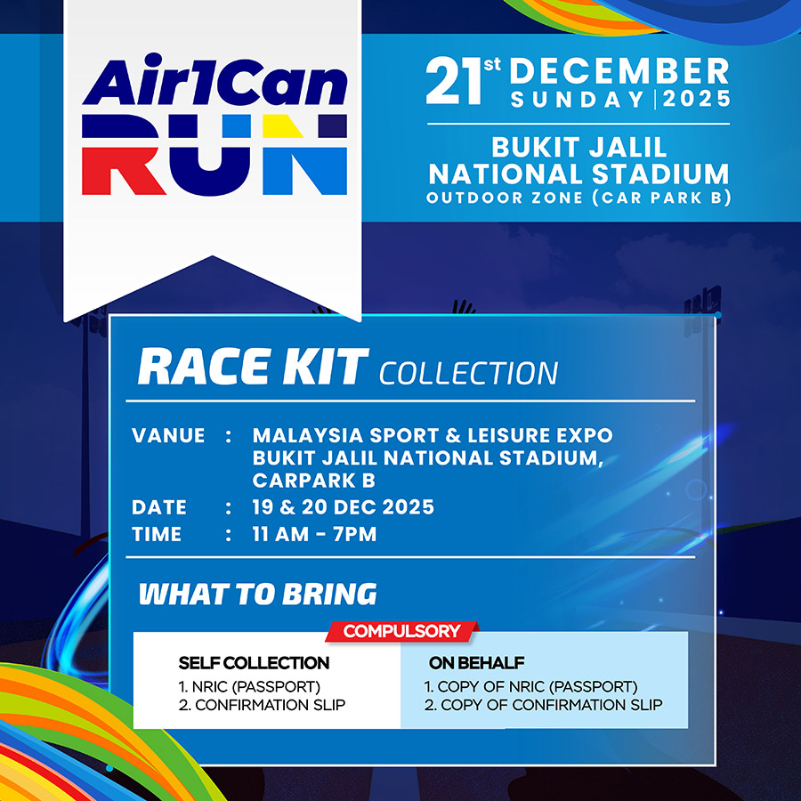 This event is more than just a run — it's a community movement that encourages Malaysians to embracewellness, fitness, and unity. Positioned at the Bukit Jalil National Stadium, Air1Can Run brings thousands of runners and visitors together in a high-energy, meaningful experience.