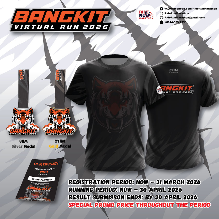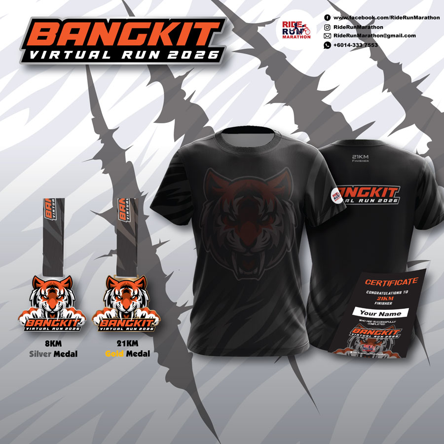 #BangkitVirtualRun #RiseAndRoar #MalaysianSpirit #RunWithCourage #TigerChallenge2026 #VirtualRunMalaysia #RunRideMarathon