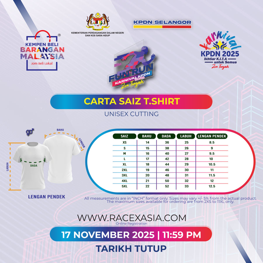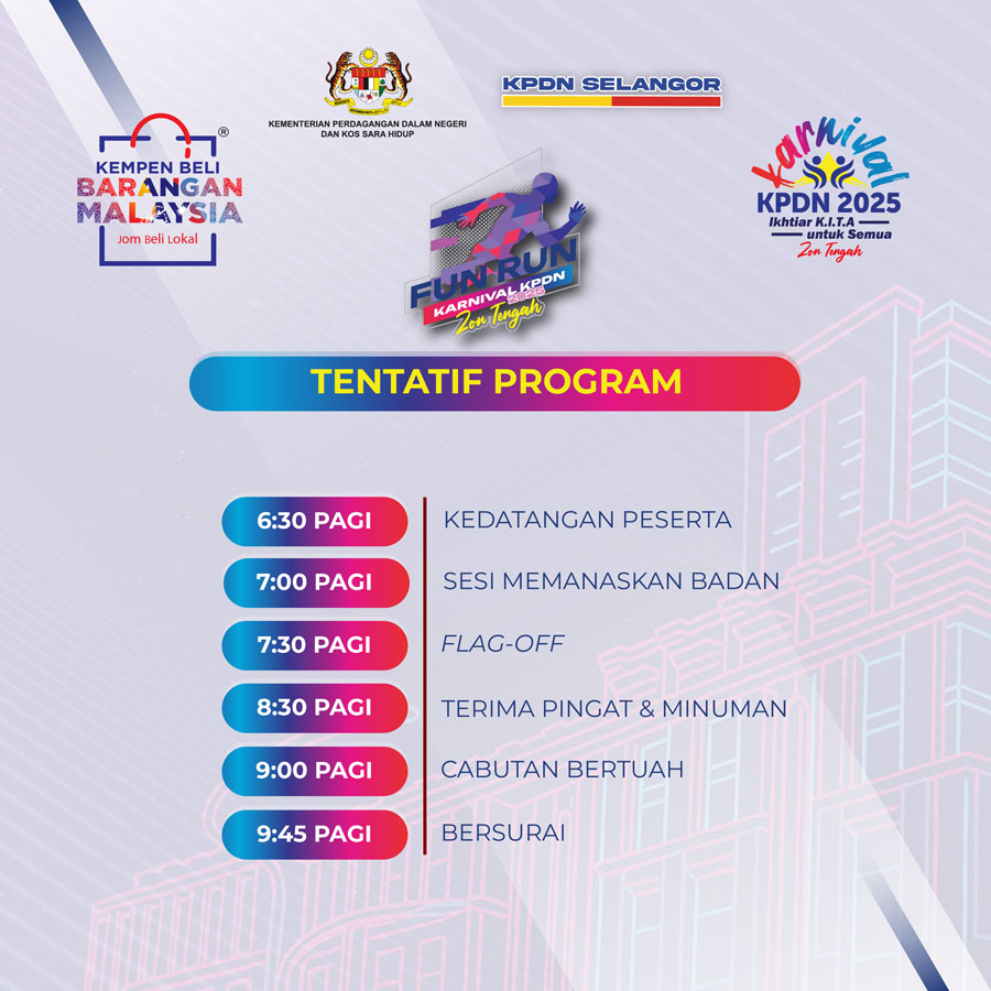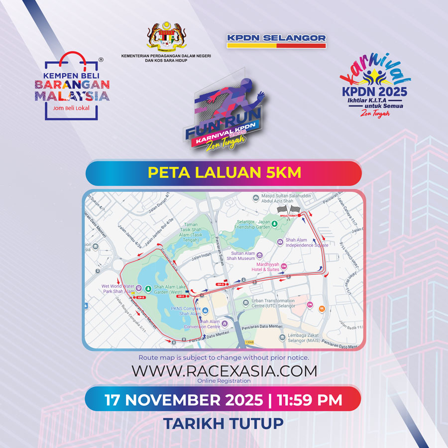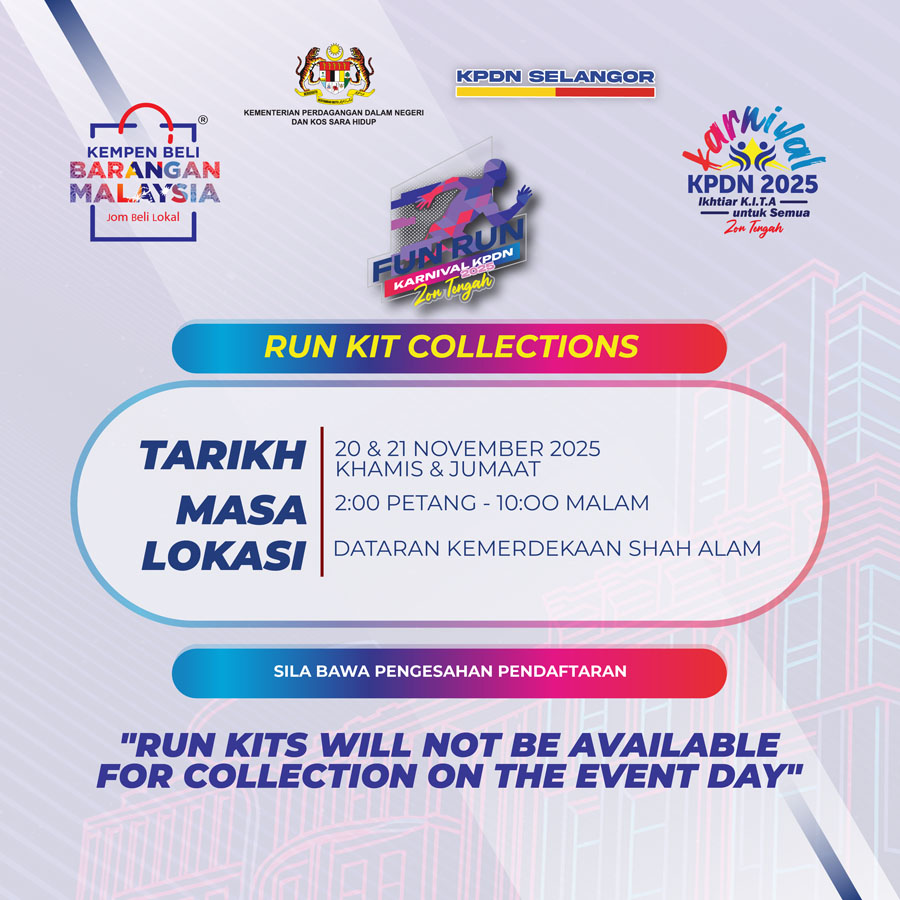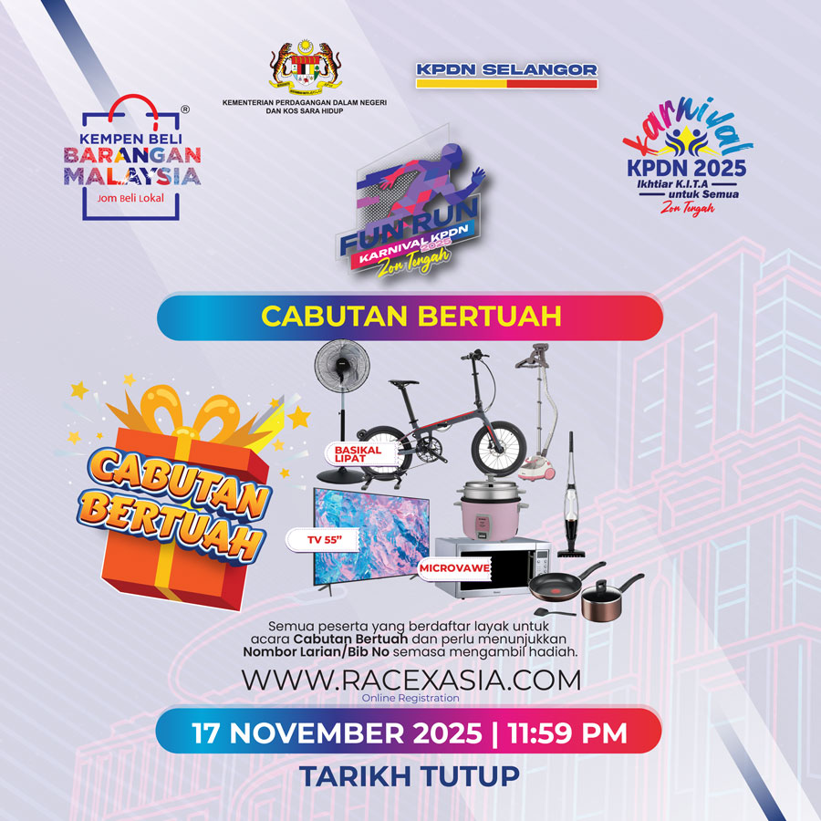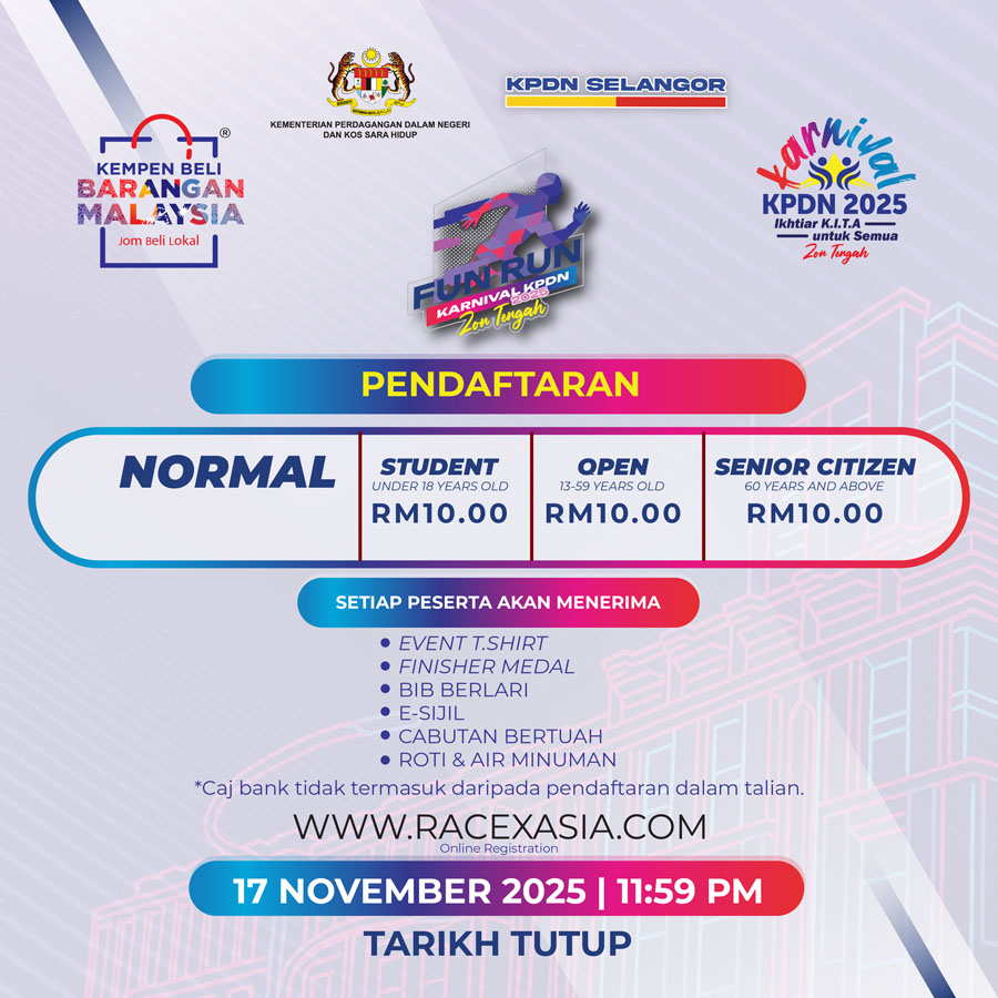 FUN RUN KARNIVAL KPDN 2025 adalah larian komuniti dan sesuai untuk semua peringkat umur.