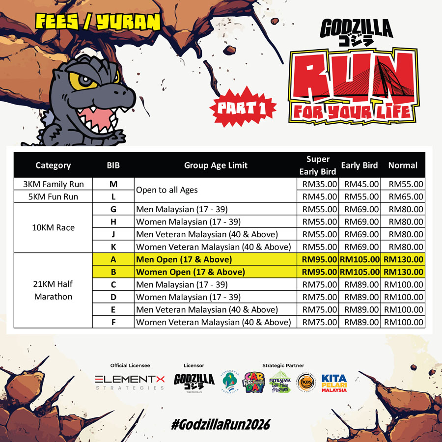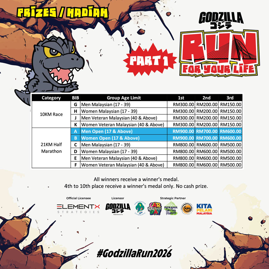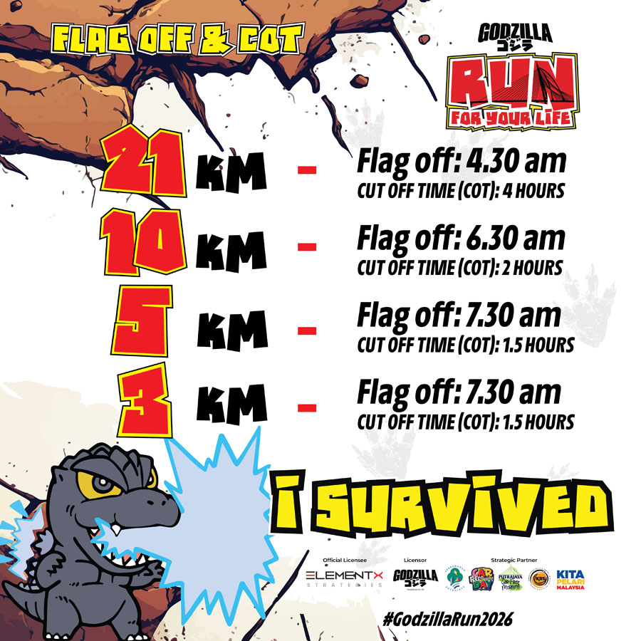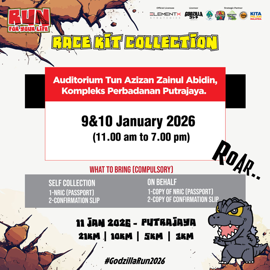 Get ready, Malaysia – the king of monsters is coming! Introducing the Godzilla Run 2026, the first-ever of its kind in the country, happening at the iconic Dataran Putrajaya. Feel the thrill and excitement of a kaiju experience like never before, as you dash through a city under "attack".