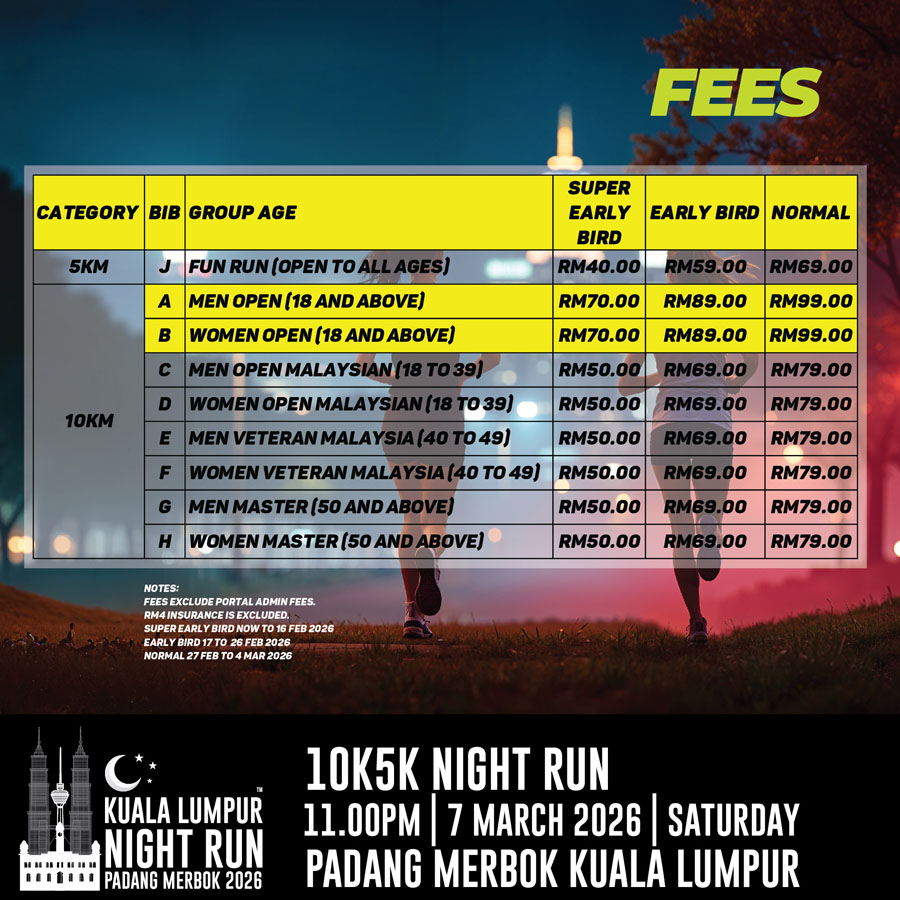 D: 10km Women Open Malaysian (18-39yrs) (10km) Fees shown is SUBJECT to Admin Fee