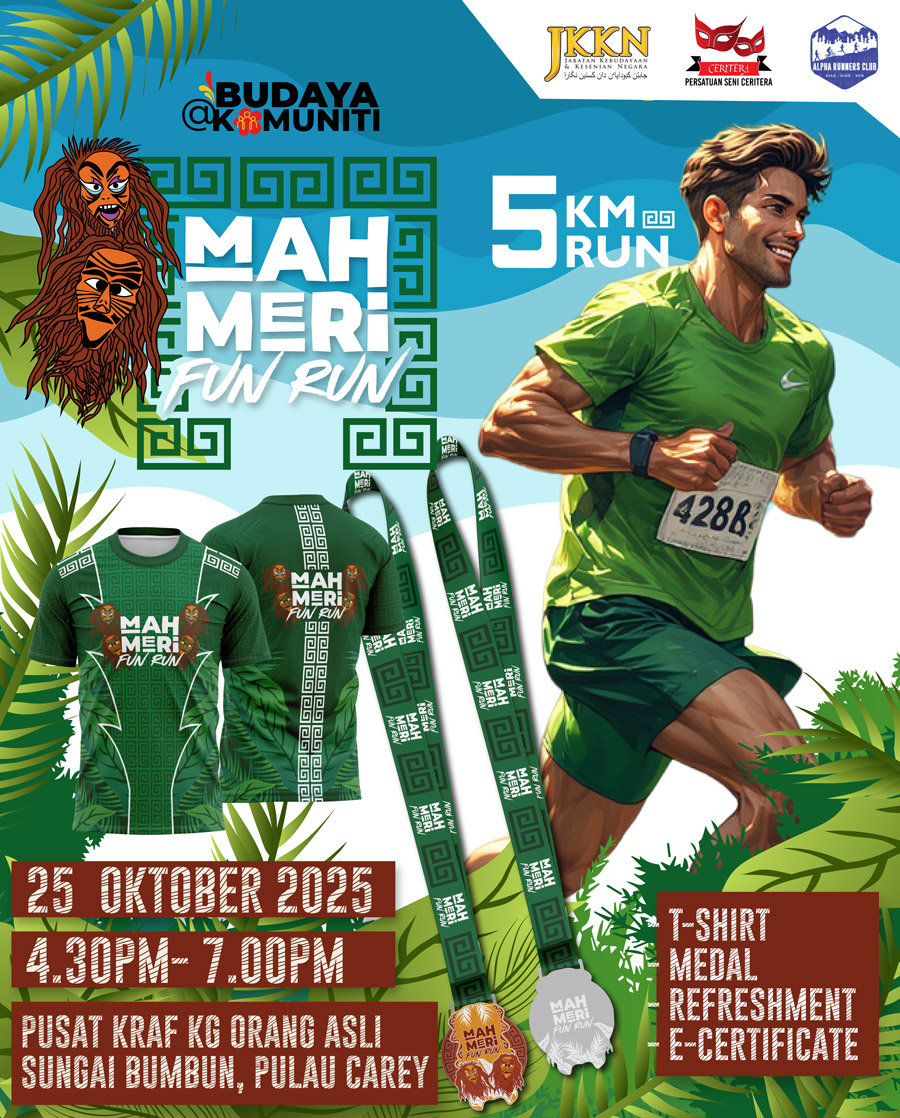 Larian ini akan berlangsung pada 25 Oktober 2025 di lokasi ikonik: Pusat Kraftangan Kampung Orang Asli Sungai Bumbun, Pulau Carey.