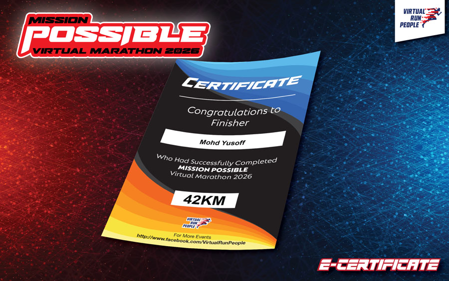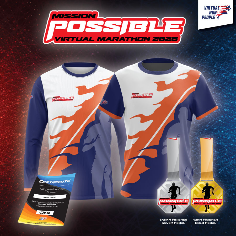 In Mission Possible Virtual Marathon 2026, we run not just for fitness, but to show that any challenge can be conquered with the right mindset. Every kilometre is a reminder that strength begins in the mind. Join runners from all walks of life as we challenge our limits, stay committed, and push forward step by step. Lace up, believe in yourself, and make the impossible… possible!