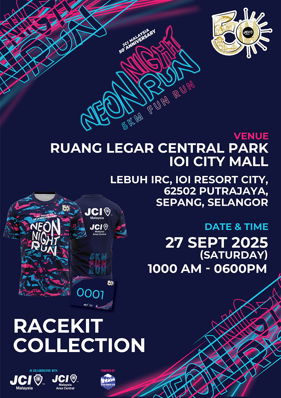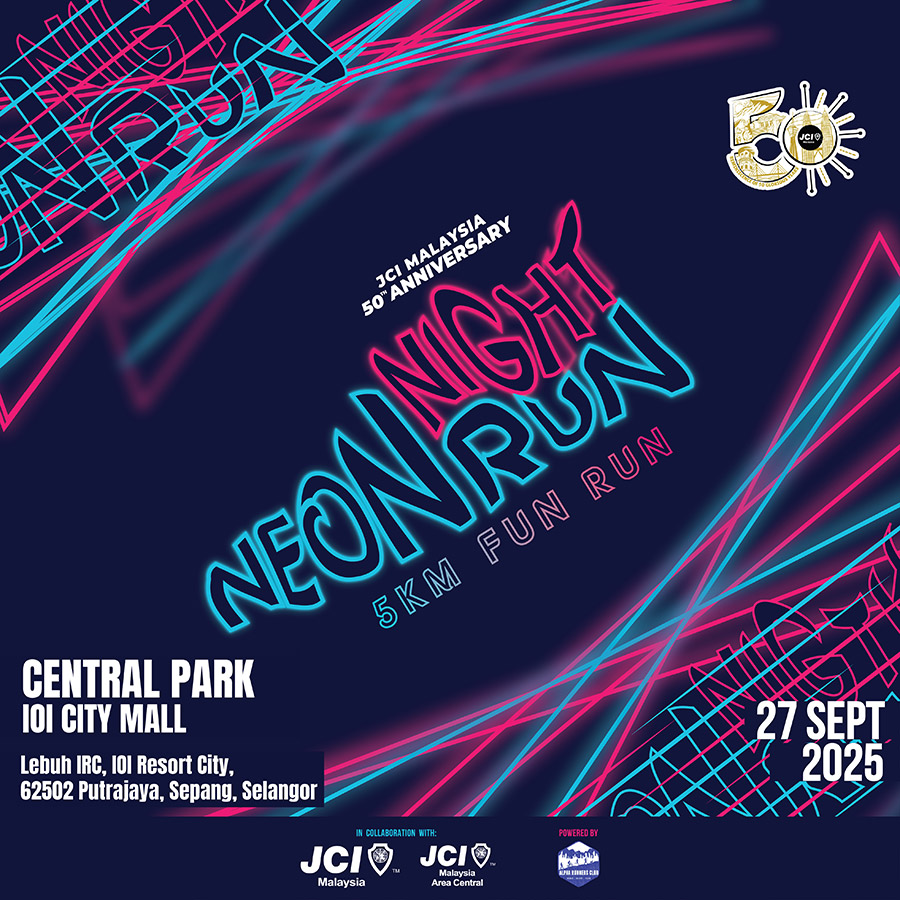 Join us for the spectacular JCI Malaysia 50th Anniversary Neon Night Run! It's a vibrant 5KM Fun Run that promises glowing good times and unforgettable memories.