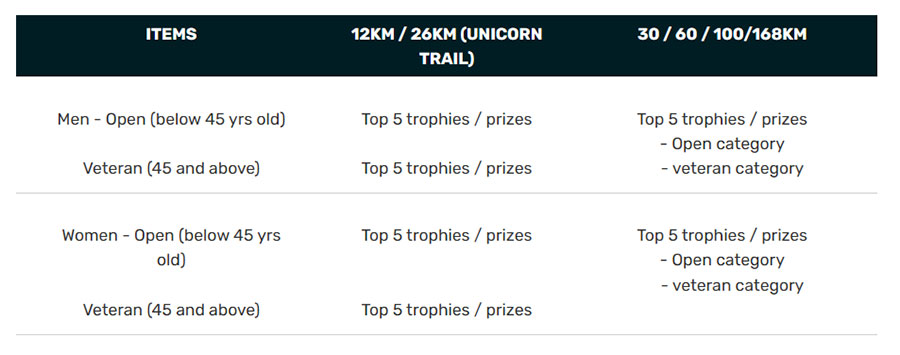 Men Open (Below 45yrs) Men Veteran (45yrs & above) Women Open (Below 45yrs) Women Veteran (45yrs & above) (12km) Fees is SUBJECT to Admin Fee