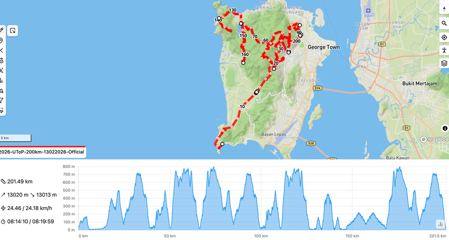 In 2025, we raised the challenge to 200km, going for the 1st time to the southern part of Penang Island, including Balik Pulau and Gertak Sanggul. The cutoff time of 72hrs should however be generous enough